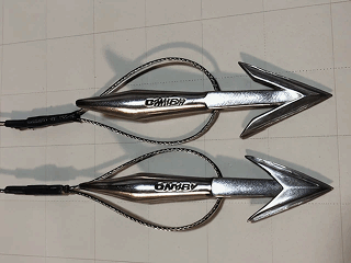 | マグロ打ち込み銛について 大型魚の捕獲などに使用される打ち込み銛で、実際の現場で使用されることを前提に、実用性を重視した仕様となっています。 3分割式で持ち運びや収納がしやすく、全長約2.56m・本体重量約2.2kgの扱いやすい設計です。 接合部分には強度や耐久性に配慮した構造を採用し、用途に応じて銛先の種類を選べるほか、ワイヤーや連結部分にも強度と扱いやすさに配慮した設計となっています。 着脱や交換がしやすく、現場での連続使用にも対応できる実用性の高い仕様です。 |